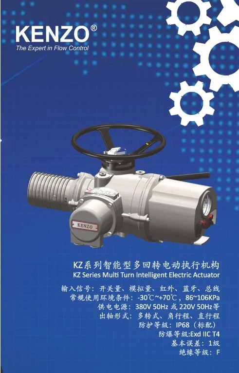 肯佐控制設(shè)備(上海)有限公司生產(chǎn)的新一代智能型kz系列電動執(zhí)行機(jī)構(gòu),可以通過一個(gè)獨(dú)立的設(shè)定器對其進(jìn)行非侵入性的快速設(shè)定、檢查及查詢。執(zhí)行機(jī)構(gòu)采用大屏液晶顯示器,以中文、數(shù)字、圖形等形式顯示執(zhí)行機(jī)構(gòu)的轉(zhuǎn)矩、閥門位置、限位設(shè)定等工作狀態(tài)和報(bào)警,極大地方便了用戶的操作使用。