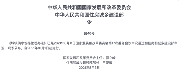 經(jīng)過一年多的期盼,就在剛剛,國家發(fā)改委通過其官網(wǎng)正式對外公布新修訂的《城鎮(zhèn)供水價格管理辦法》