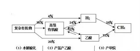 理論研究認(rèn)為三個(gè)階段,即厭氧消化過程分為水解發(fā)酵階段、產(chǎn)乙酸產(chǎn)氫階段、產(chǎn)甲烷階段三部分。
