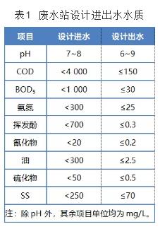 廢水站處理出水水質(zhì)需滿足《煉焦化學(xué)工業(yè)污染物排放標(biāo)準(zhǔn)》(gb 16171—2012)中的新建企業(yè)間接排放標(biāo)準(zhǔn)要求。設(shè)計(jì)進(jìn)出水水質(zhì)見表 1。