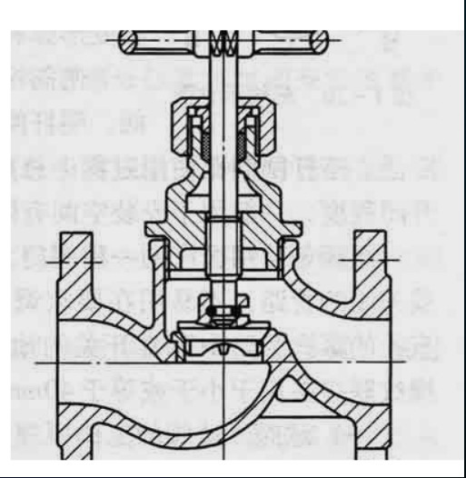 4、 截止閥閥體的結(jié)構(gòu)形式有直通式、直流式和直角式。直通式是最常見(jiàn)的結(jié)構(gòu),但其流體的阻力最大。直流式流體阻力較小,多用于含固體顆?;蛘扯却蟮牧黧w。直角式閥體多采用鍛造,適用于較小通經(jīng)、較高壓力的的截止閥。